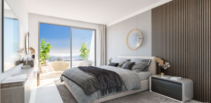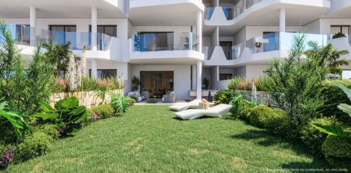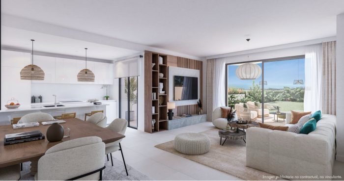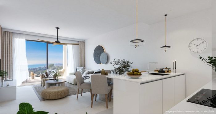 Este elegante apartamento de 3 dormitorios y 2 baños en Las Lomas del Higuerón combina diseño contemporáneo, vistas al mar y un estilo de vida tipo resort.